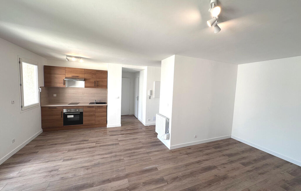 Grand séjour avec cuisine équipée de 32 m², chambre de 12 m², salle de bain avec douche à l'italienne, wc séparés